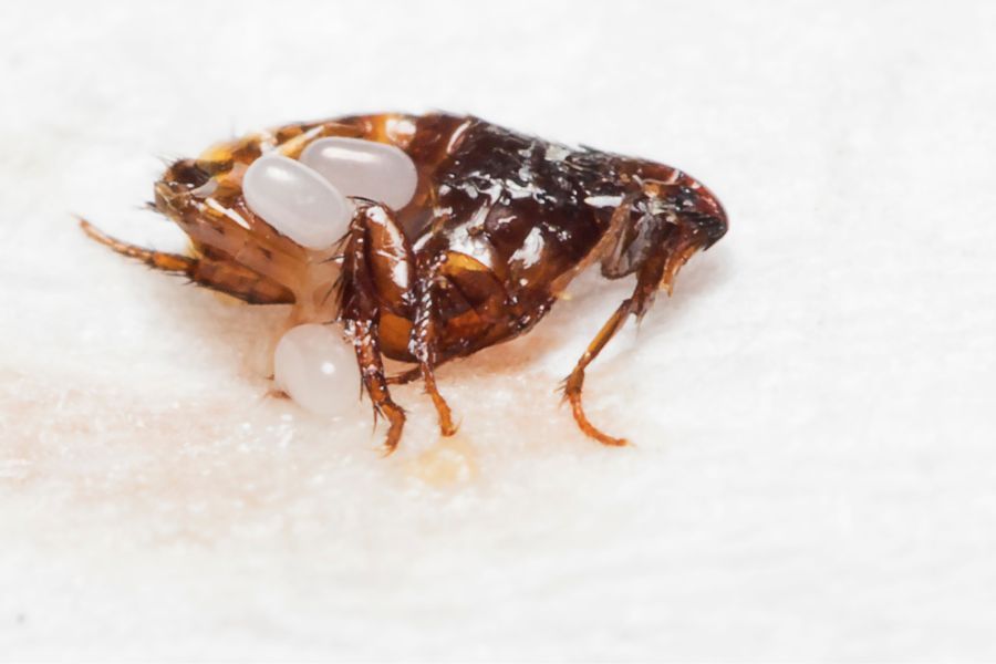 If you have pets in your home, even if they are on regular flea and tick prevention, be on the lookout for compulsive scratching, which can result in loss of hair and skin irritations. Be sure to thoroughly check them on a regular basis for tiny, moving brown spots. For humans, flea bites usually cause small red spots around the ankles, feet, and legs, but can spread across the body if left untreated. Reactions to flea bites can include hives, rash, or secondary infections from scratching, as well as the potential for more severe reactions.